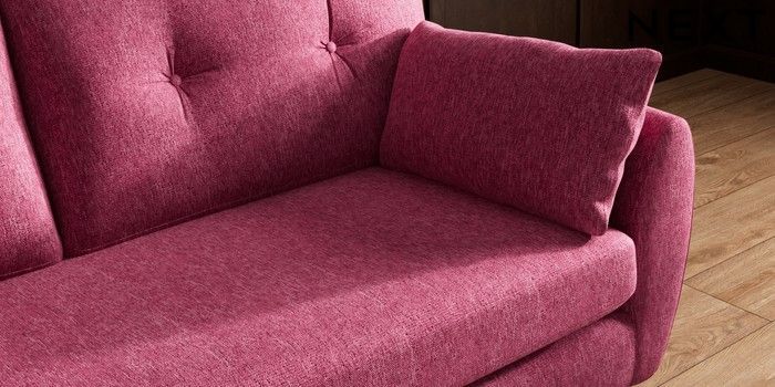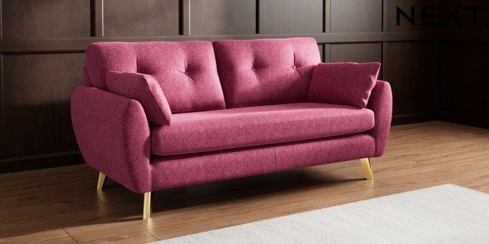 7.3.1 Buy Wilson Buttoned Back 3 Seater Small Sofa Cotswold Chenille Dark Raspberry Pink Metal Tapered - Gold from the Seasons online shop Click here to use our website with more accessibility support, for example screen readers