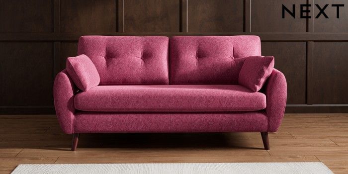 7.3.1 Buy Wilson Buttoned Back 3 Seater Small Sofa Cotswold Chenille Dark Raspberry Pink Retro Tapered - Dark Brown from the Seasons online shop Click here to use our website with more accessibility support, for example screen readers