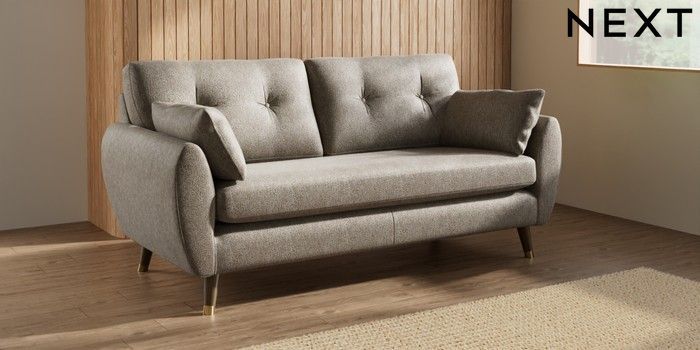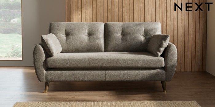 7.3.1 Buy Wilson Buttoned Back 3 Seater Small Sofa Cotswold Chenille Mid Mink Brown Low Retro Tapered Metal Cap - Mid from the Seasons online shop Click here to use our website with more accessibility support, for example screen readers
