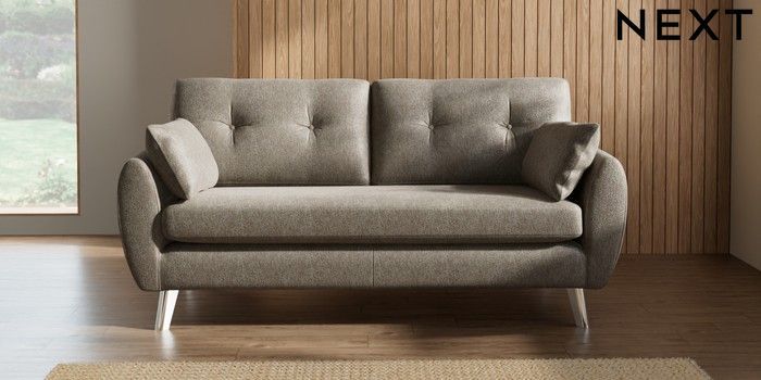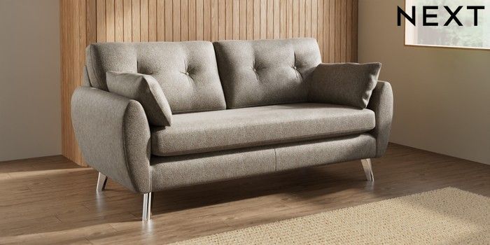 7.3.1 Buy Wilson Buttoned Back 3 Seater Small Sofa Cotswold Chenille Mid Mink Brown Metal Tapered - Chrome from the Seasons online shop Click here to use our website with more accessibility support, for example screen readers