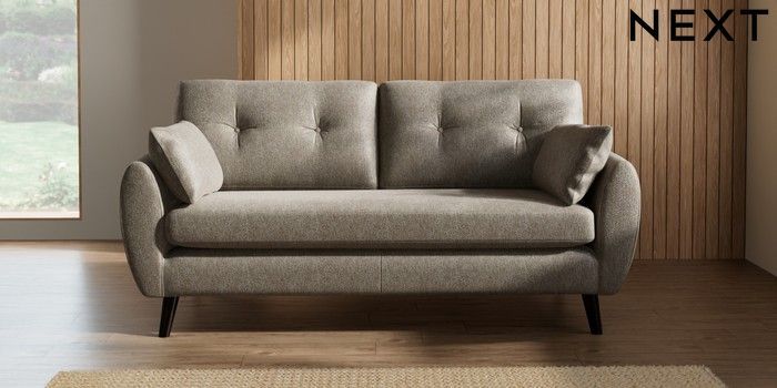7.3.1 Buy Wilson Buttoned Back 3 Seater Small Sofa Cotswold Chenille Mid Mink Brown Retro Tapered - Dark from the Seasons online shop Click here to use our website with more accessibility support, for example screen readers