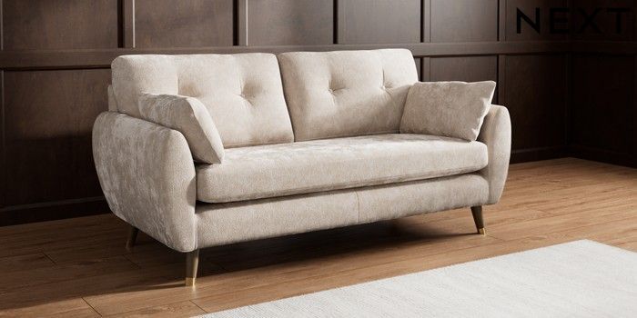 7.3.1 Buy Wilson Buttoned Back 3 Seater Small Sofa Distressed Velour Mid Natural Low Retro Tapered Metal Cap - Mid from the Seasons online shop Click here to use our website with more accessibility support, for example screen readers