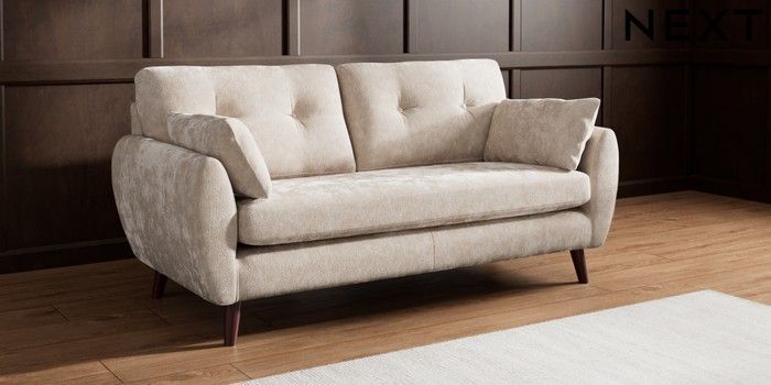 7.3.1 Buy Wilson Buttoned Back 3 Seater Small Sofa Distressed Velour Mid Natural Retro Tapered - Dark Brown from the Seasons online shop Click here to use our website with more accessibility support, for example screen readers