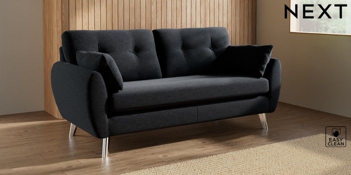 7.3.1 Buy Wilson Buttoned Back 3 Seater Small Sofa Fine Chenille Easy Clean Black Metal Tapered - Chrome from the Seasons online shop Click here to use our website with more accessibility support, for example screen readers