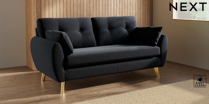 7.3.1 Buy Wilson Buttoned Back 3 Seater Small Sofa Fine Chenille Easy Clean Black Metal Tapered - Gold from the Seasons online shop Click here to use our website with more accessibility support, for example screen readers