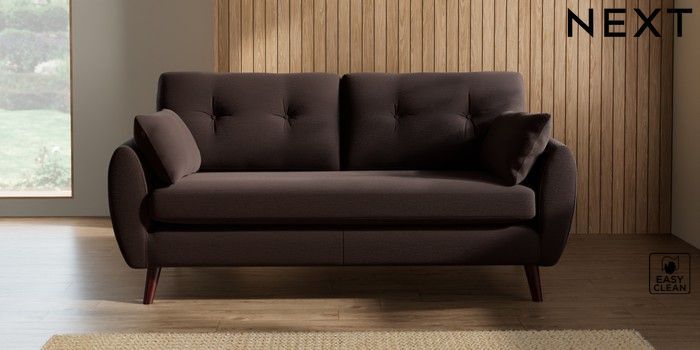 7.3.1 Buy Wilson Buttoned Back 3 Seater Small Sofa Fine Chenille Easy Clean Chocolate Brown Retro Tapered - Dark Brown from the Seasons online shop Click here to use our website with more accessibility support, for example screen readers