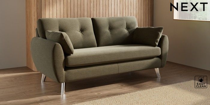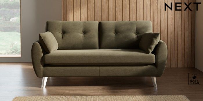 7.3.1 Buy Wilson Buttoned Back 3 Seater Small Sofa Fine Chenille Easy Clean Dark Moss Green Metal Tapered - Chrome from the Seasons online shop Click here to use our website with more accessibility support, for example screen readers