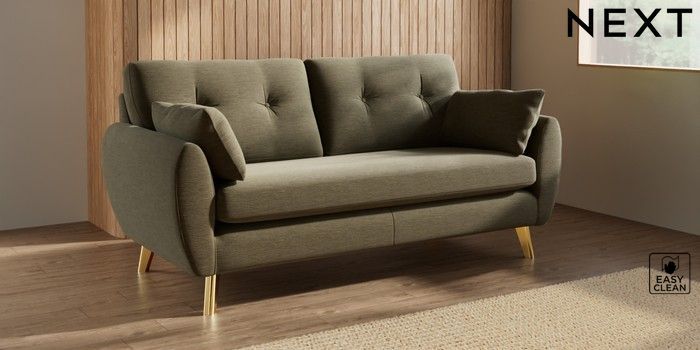 7.3.1 Buy Wilson Buttoned Back 3 Seater Small Sofa Fine Chenille Easy Clean Dark Moss Green Metal Tapered - Gold from the Seasons online shop Click here to use our website with more accessibility support, for example screen readers