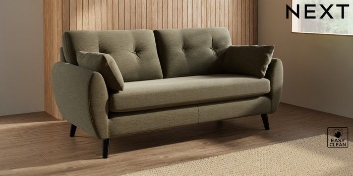 7.3.1 Buy Wilson Buttoned Back 3 Seater Small Sofa Fine Chenille Easy Clean Dark Moss Green Retro Tapered - Dark from the Seasons online shop Click here to use our website with more accessibility support, for example screen readers