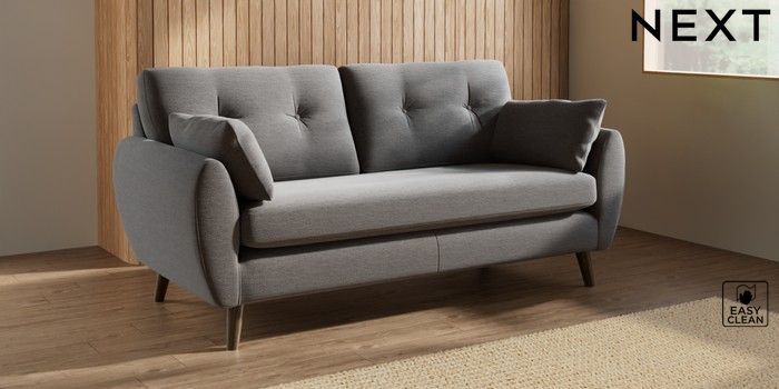 7.3.1 Buy Wilson Buttoned Back 3 Seater Small Sofa Fine Chenille Easy Clean Dark Smoke Grey Retro Tapered - Mid from the Seasons online shop Click here to use our website with more accessibility support, for example screen readers