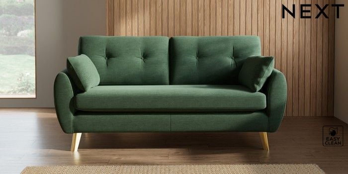 7.3.1 Buy Wilson Buttoned Back 3 Seater Small Sofa Fine Chenille Easy Clean Mid Khaki Green Metal Tapered - Gold from the Seasons online shop Click here to use our website with more accessibility support, for example screen readers
