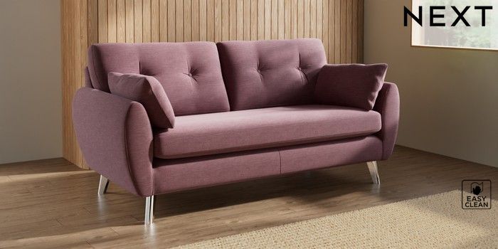 7.3.1 Buy Wilson Buttoned Back 3 Seater Small Sofa Fine Chenille Easy Clean Mid Mulberry Purple Metal Tapered - Chrome from the Seasons online shop Click here to use our website with more accessibility support, for example screen readers