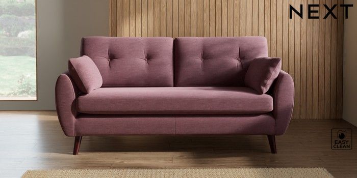 7.3.1 Buy Wilson Buttoned Back 3 Seater Small Sofa Fine Chenille Easy Clean Mid Mulberry Purple Retro Tapered - Dark Brown from the Seasons online shop Click here to use our website with more accessibility support, for example screen readers