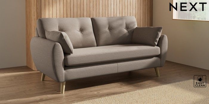 7.3.1 Buy Wilson Buttoned Back 3 Seater Small Sofa Fine Chenille Easy Clean Mid Taupe Brown Retro Tapered - Light from the Seasons online shop Click here to use our website with more accessibility support, for example screen readers