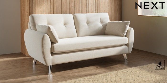 7.3.1 Buy Wilson Buttoned Back 3 Seater Small Sofa Fine Chenille Easy Clean Oyster Metal Tapered - Chrome from the Seasons online shop Click here to use our website with more accessibility support, for example screen readers