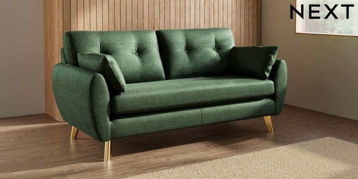 7.3.1 Buy Wilson Buttoned Back 3 Seater Small Sofa Luxe Chenille Dark Green Metal Tapered - Gold from the Seasons online shop Click here to use our website with more accessibility support, for example screen readers