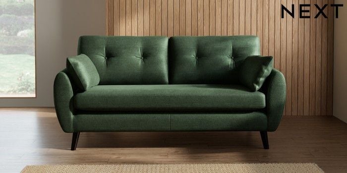 7.3.1 Buy Wilson Buttoned Back 3 Seater Small Sofa Luxe Chenille Dark Green Retro Tapered - Dark from the Seasons online shop Click here to use our website with more accessibility support, for example screen readers