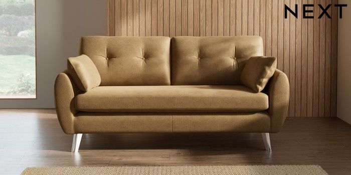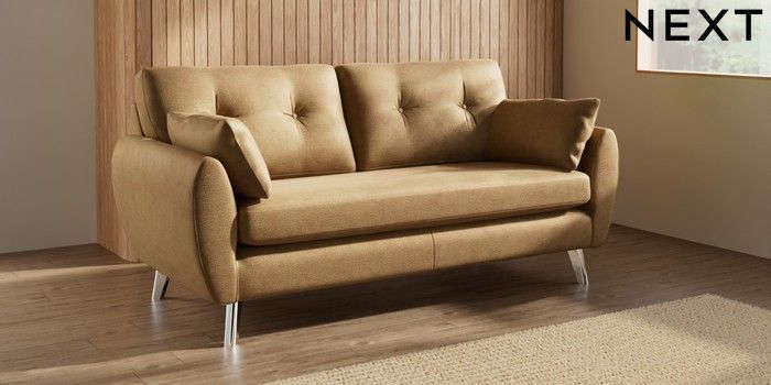 7.3.1 Buy Wilson Buttoned Back 3 Seater Small Sofa Luxe Chenille Honey Yellow Metal Tapered - Chrome from the Seasons online shop Click here to use our website with more accessibility support, for example screen readers