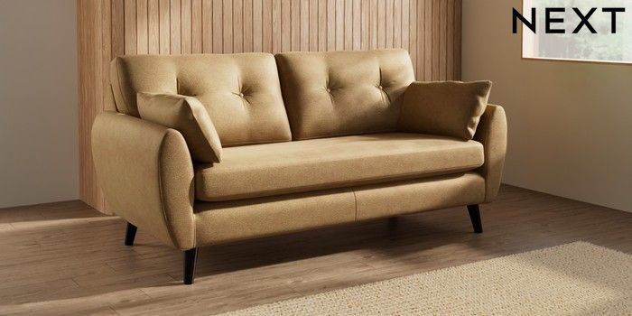 7.3.1 Buy Wilson Buttoned Back 3 Seater Small Sofa Luxe Chenille Honey Yellow Retro Tapered - Dark from the Seasons online shop Click here to use our website with more accessibility support, for example screen readers