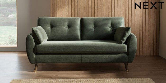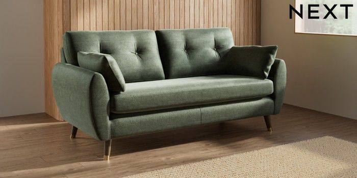 7.3.1 Buy Wilson Buttoned Back 3 Seater Small Sofa Luxe Chenille Mid Green Low Retro Tapered Metal Cap - Mid from the Seasons online shop Click here to use our website with more accessibility support, for example screen readers