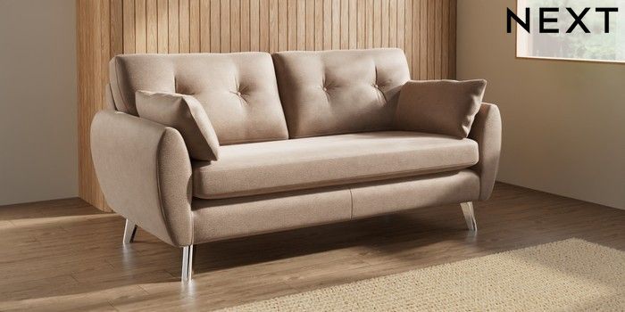 7.3.1 Buy Wilson Buttoned Back 3 Seater Small Sofa Luxe Chenille Mid Natural Metal Tapered - Chrome from the Seasons online shop Click here to use our website with more accessibility support, for example screen readers