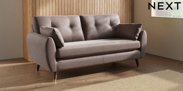 7.3.1 Buy Wilson Buttoned Back 3 Seater Small Sofa Luxe Chenille Mink Brown Low Retro Tapered Metal Cap - Mid from the Seasons online shop Click here to use our website with more accessibility support, for example screen readers