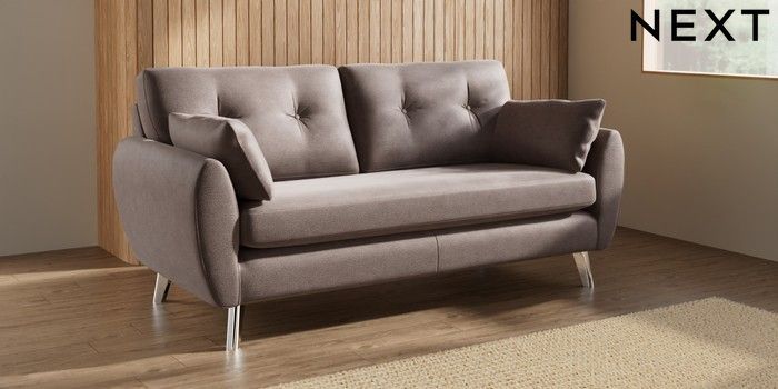 7.3.1 Buy Wilson Buttoned Back 3 Seater Small Sofa Luxe Chenille Mink Brown Metal Tapered - Chrome from the Seasons online shop Click here to use our website with more accessibility support, for example screen readers