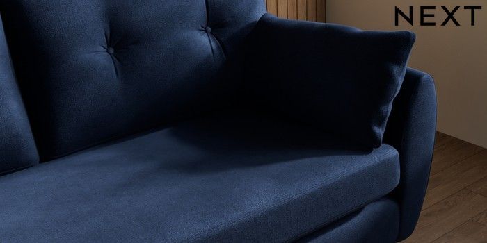 7.3.1 Buy Wilson Buttoned Back 3 Seater Small Sofa Luxe Chenille Navy Blue Low Retro Tapered Metal Cap - Mid from the Seasons online shop Click here to use our website with more accessibility support, for example screen readers
