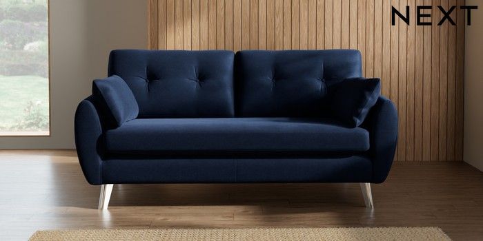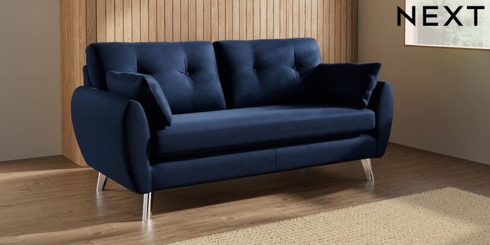 7.3.1 Buy Wilson Buttoned Back 3 Seater Small Sofa Luxe Chenille Navy Blue Metal Tapered - Chrome from the Seasons online shop Click here to use our website with more accessibility support, for example screen readers