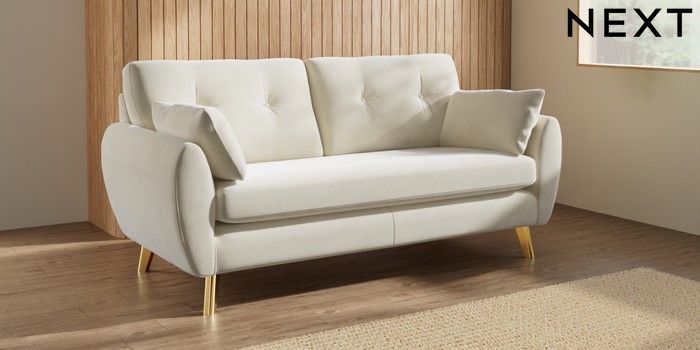 7.3.1 Buy Wilson Buttoned Back 3 Seater Small Sofa Luxe Chenille Oyster Metal Tapered - Gold from the Seasons online shop Click here to use our website with more accessibility support, for example screen readers