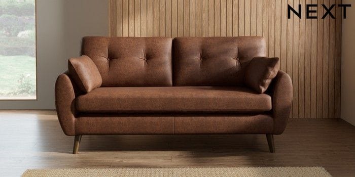 7.3.1 Buy Wilson Buttoned Back 3 Seater Small Sofa Monza Faux Leather Easy Clean Chestnut Brown Retro Tapered - Mid from the Seasons online shop Click here to use our website with more accessibility support, for example screen readers