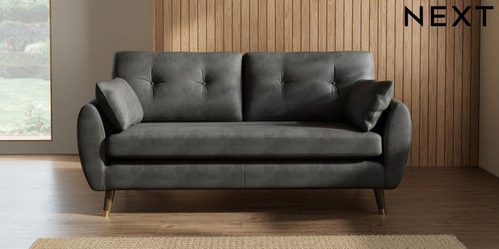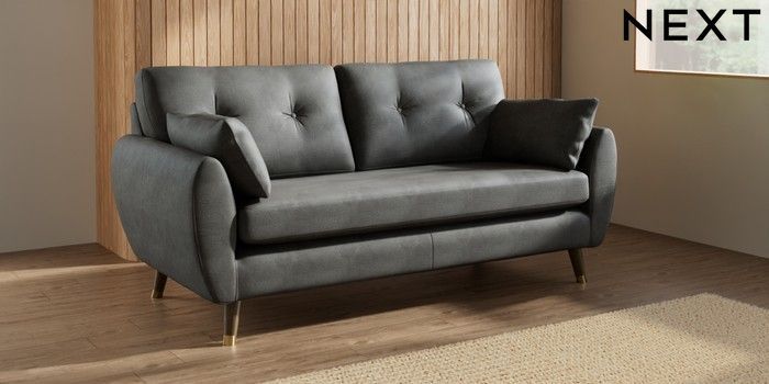 7.3.1 Buy Wilson Buttoned Back 3 Seater Small Sofa Monza Faux Leather Easy Clean Dark Grey Low Retro Tapered Metal Cap - Mid from the Seasons online shop Click here to use our website with more accessibility support, for example screen readers