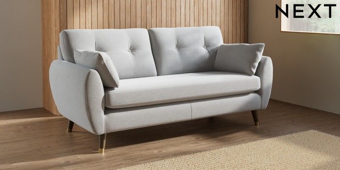 7.3.1 Buy Wilson Buttoned Back 3 Seater Small Sofa Natural Mix Light Grey Low Retro Tapered Metal Cap - Mid from the Seasons online shop Click here to use our website with more accessibility support, for example screen readers