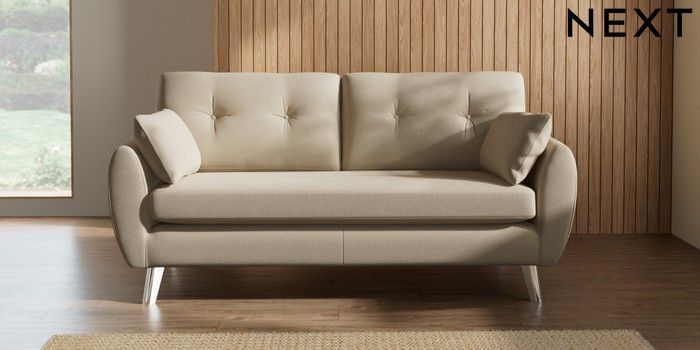 7.3.1 Buy Wilson Buttoned Back 3 Seater Small Sofa Natural Mix Light Natural Metal Tapered - Chrome from the Seasons online shop Click here to use our website with more accessibility support, for example screen readers