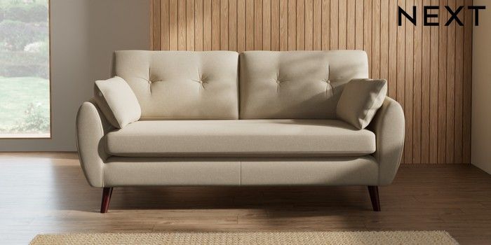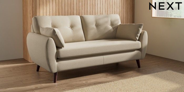 7.3.1 Buy Wilson Buttoned Back 3 Seater Small Sofa Natural Mix Light Natural Retro Tapered - Dark Brown from the Seasons online shop Click here to use our website with more accessibility support, for example screen readers