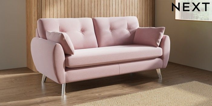 7.3.1 Buy Wilson Buttoned Back 3 Seater Small Sofa Natural Mix Light Rose Pink Metal Tapered - Chrome from the Seasons online shop Click here to use our website with more accessibility support, for example screen readers