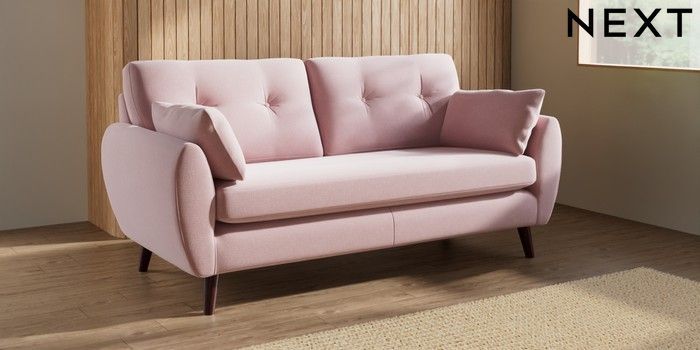 7.3.1 Buy Wilson Buttoned Back 3 Seater Small Sofa Natural Mix Light Rose Pink Retro Tapered - Dark Brown from the Seasons online shop Click here to use our website with more accessibility support, for example screen readers