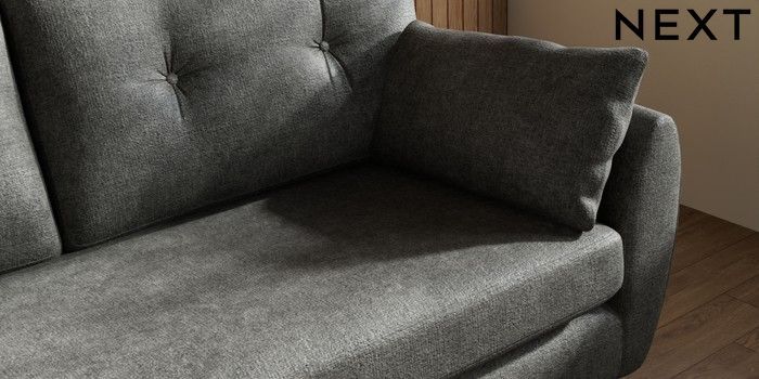 7.3.1 Buy Wilson Buttoned Back 3 Seater Small Sofa Plush Chenille Dark Grey Metal Tapered - Gold from the Seasons online shop Click here to use our website with more accessibility support, for example screen readers