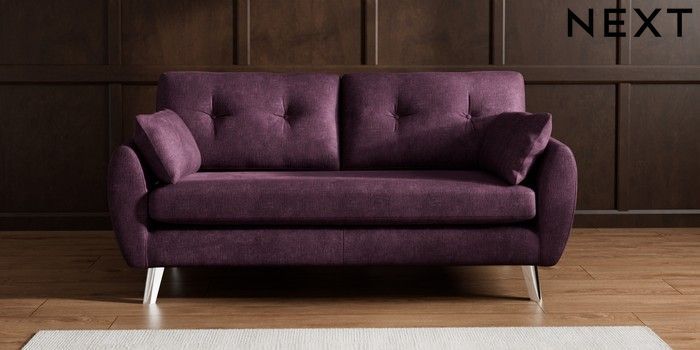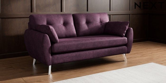 7.3.1 Buy Wilson Buttoned Back 3 Seater Small Sofa Plush Chenille Dark Plum Purple Metal Tapered - Chrome from the Seasons online shop Click here to use our website with more accessibility support, for example screen readers