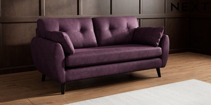 7.3.1 Buy Wilson Buttoned Back 3 Seater Small Sofa Plush Chenille Dark Plum Purple Retro Tapered - Dark from the Seasons online shop Click here to use our website with more accessibility support, for example screen readers