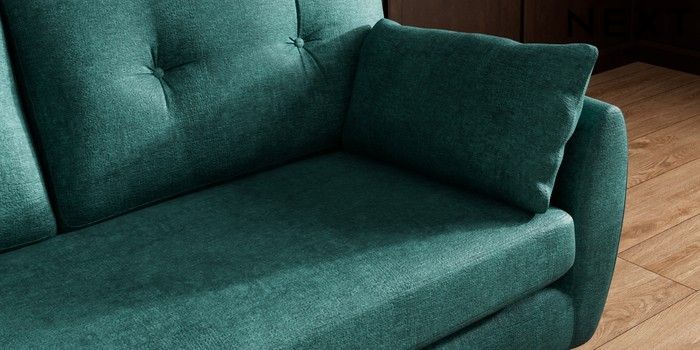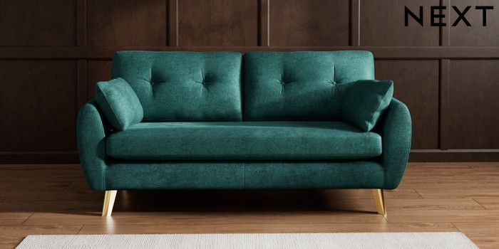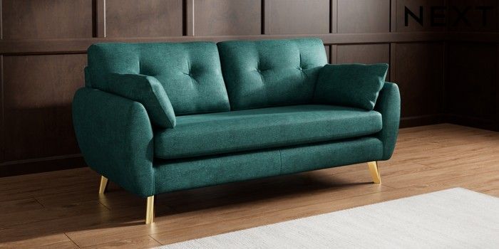 7.3.1 Buy Wilson Buttoned Back 3 Seater Small Sofa Plush Chenille Dark Teal Green Metal Tapered - Gold from the Seasons online shop Click here to use our website with more accessibility support, for example screen readers