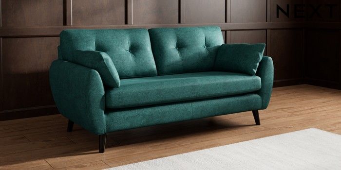 7.3.1 Buy Wilson Buttoned Back 3 Seater Small Sofa Plush Chenille Dark Teal Green Retro Tapered - Dark from the Seasons online shop Click here to use our website with more accessibility support, for example screen readers