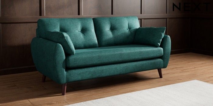 7.3.1 Buy Wilson Buttoned Back 3 Seater Small Sofa Plush Chenille Dark Teal Green Retro Tapered - Dark Brown from the Seasons online shop Click here to use our website with more accessibility support, for example screen readers