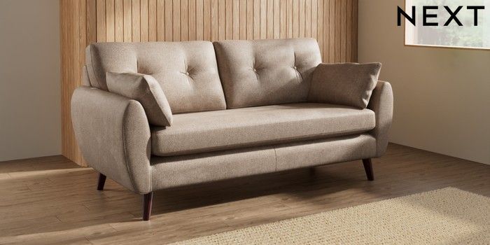 7.3.1 Buy Wilson Buttoned Back 3 Seater Small Sofa Plush Chenille Mid Natural Retro Tapered - Dark Brown from the Seasons online shop Click here to use our website with more accessibility support, for example screen readers