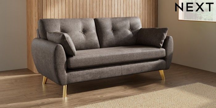 7.3.1 Buy Wilson Buttoned Back 3 Seater Small Sofa Plush Chenille Mink Brown Metal Tapered - Gold from the Seasons online shop Click here to use our website with more accessibility support, for example screen readers