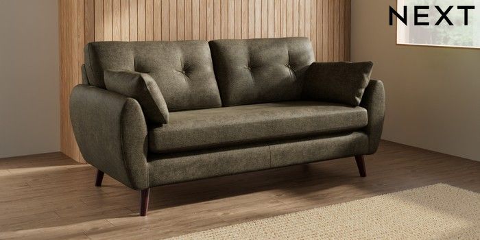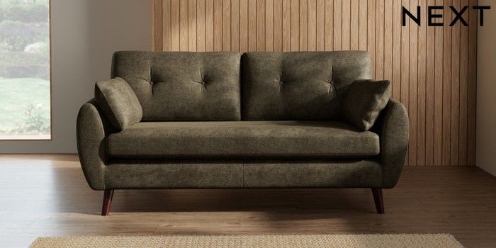 7.3.1 Buy Wilson Buttoned Back 3 Seater Small Sofa Plush Chenille Moss Green Retro Tapered - Dark Brown from the Seasons online shop Click here to use our website with more accessibility support, for example screen readers
