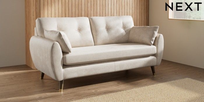 7.3.1 Buy Wilson Buttoned Back 3 Seater Small Sofa Plush Chenille Oyster Low Retro Tapered Metal Cap - Mid from the Seasons online shop Click here to use our website with more accessibility support, for example screen readers