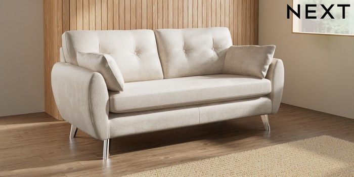 7.3.1 Buy Wilson Buttoned Back 3 Seater Small Sofa Plush Chenille Oyster Metal Tapered - Chrome from the Seasons online shop Click here to use our website with more accessibility support, for example screen readers