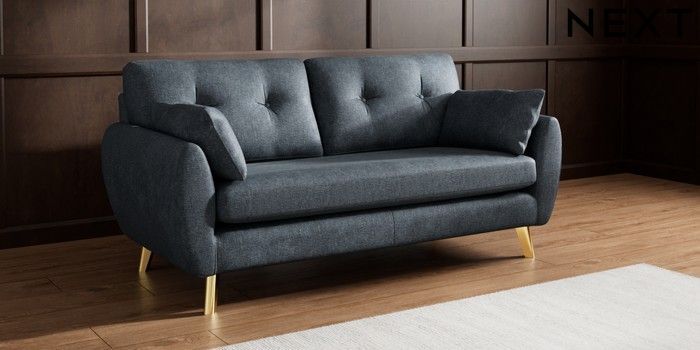 7.3.1 Buy Wilson Buttoned Back 3 Seater Small Sofa Plush Chenille Slate Blue Metal Tapered - Gold from the Seasons online shop Click here to use our website with more accessibility support, for example screen readers