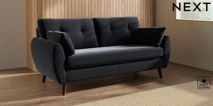 7.3.1 Buy Wilson Buttoned Back 3 Seater Small Sofa Plush Velvet Easy Clean Charcoal Grey Retro Tapered - Dark Brown from the Seasons online shop Click here to use our website with more accessibility support, for example screen readers